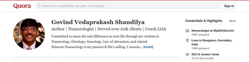 Most Read Numerologist Amoung Quora Community